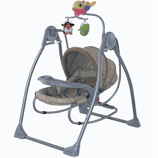 The baby swing comes with a sturdy construction for high safety. The soft baby bed cradles your baby, while the swinging action helps put your baby to sleep. The safety bar avoids your baby from falling off the cradle. With stuffed toys attached on the top, this baby swing is sure to cheer up your baby all day long.