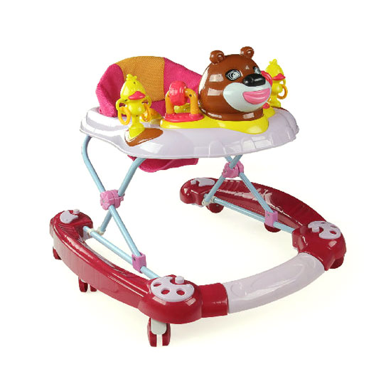 This baby walker is finely made to promise sturdiness and durability. It comes with a soft fabric seat and six wheels for babies to walk with ease. The bear and duck figures on top are incredibly adorable.