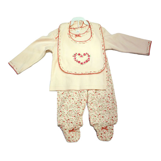 This baby wear set comes with a baby romper, a baby rib, etc with a matching design. All the pieces are made of top-quality material for a natural texture. This baby wear set is an ideal choice for your little one.