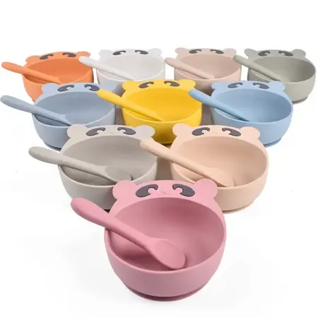 Animal Pattern Baby Dinner Bowl Silicone Baby Suction Bowl Set