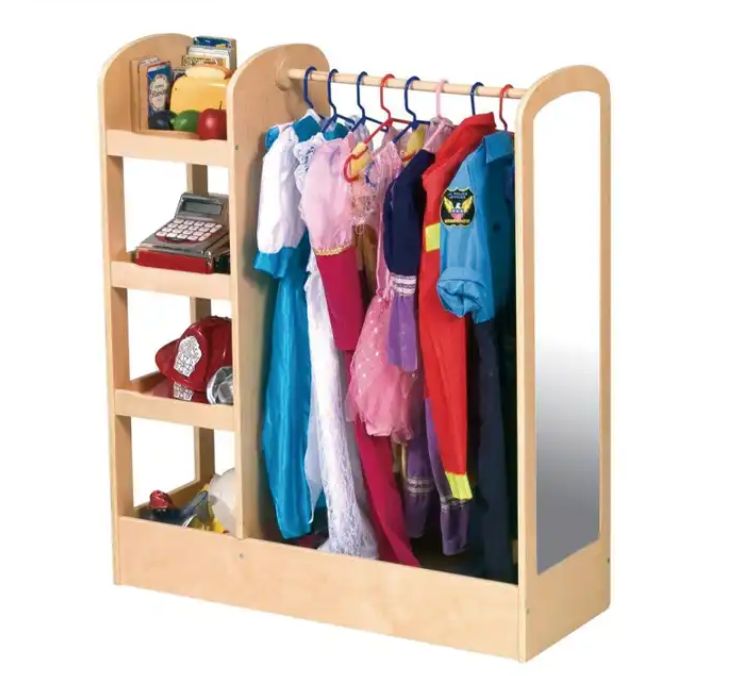 Baby clothes, toy lockers, with tray storage, hanging backpacks, hooks, hardwood
