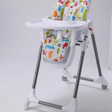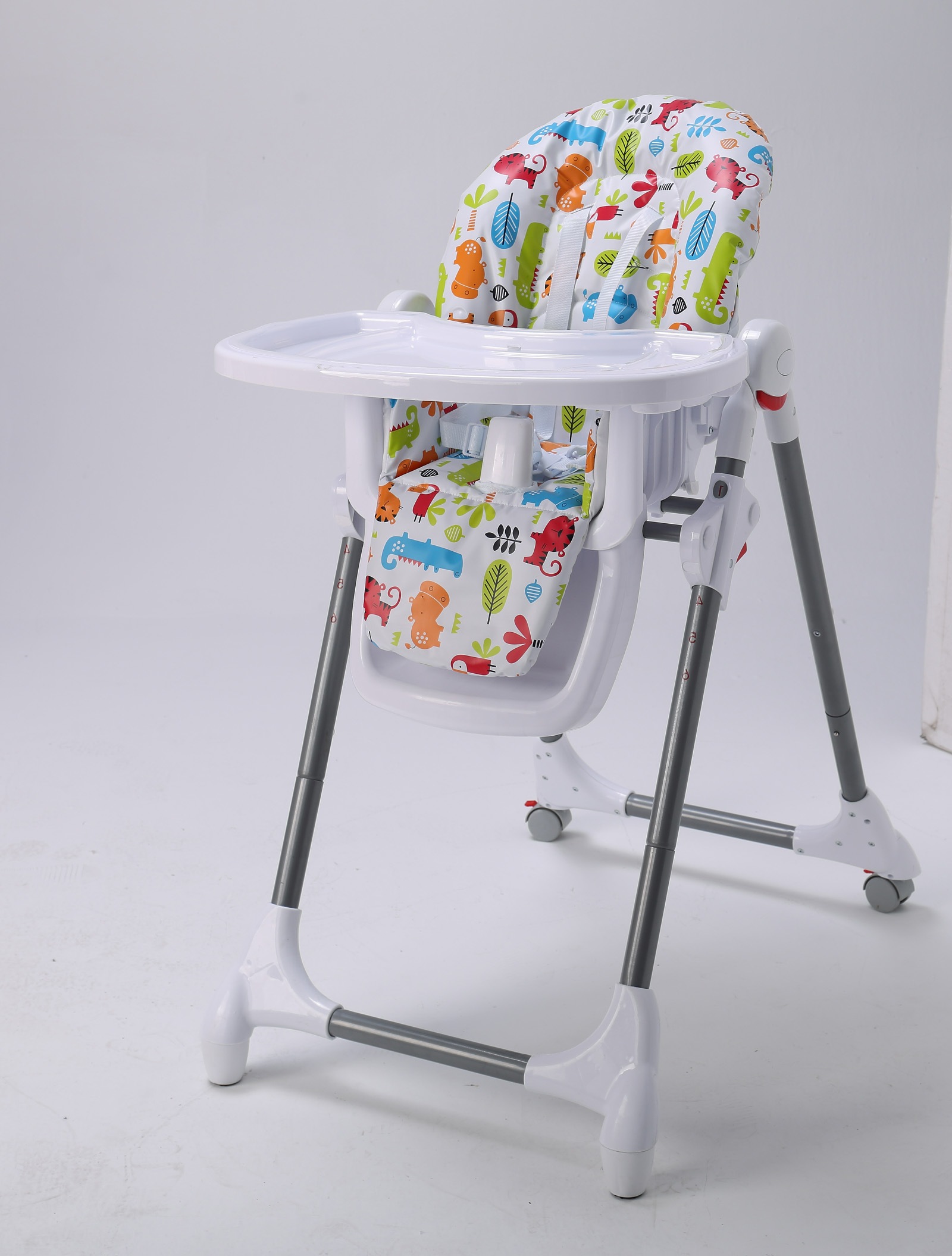 ★Adjusts to 6 height positions ,3 reclining positions.★Tray can be stored on the back of the highchair when not in use 5 points hamess.★deep-padded,comfortable seat unit with a removable, wipe clean seat cover.★Folds flat for storage Free standing when folded.