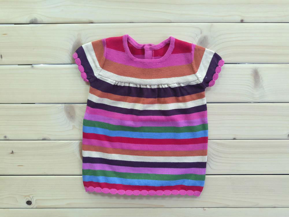Delight up your girl’s autumn look with this beautiful short-sleeved knitted dress. Sporting an eye-catching design in all-over vivid stripes, it denotes refinement with the crochet details on cuffs and hem. Knitted with superior cotton, this dress ensures all-day snug wearing experience. Pair it with colorful tights to complete an effortlessly sweet style for outdoors playtime.