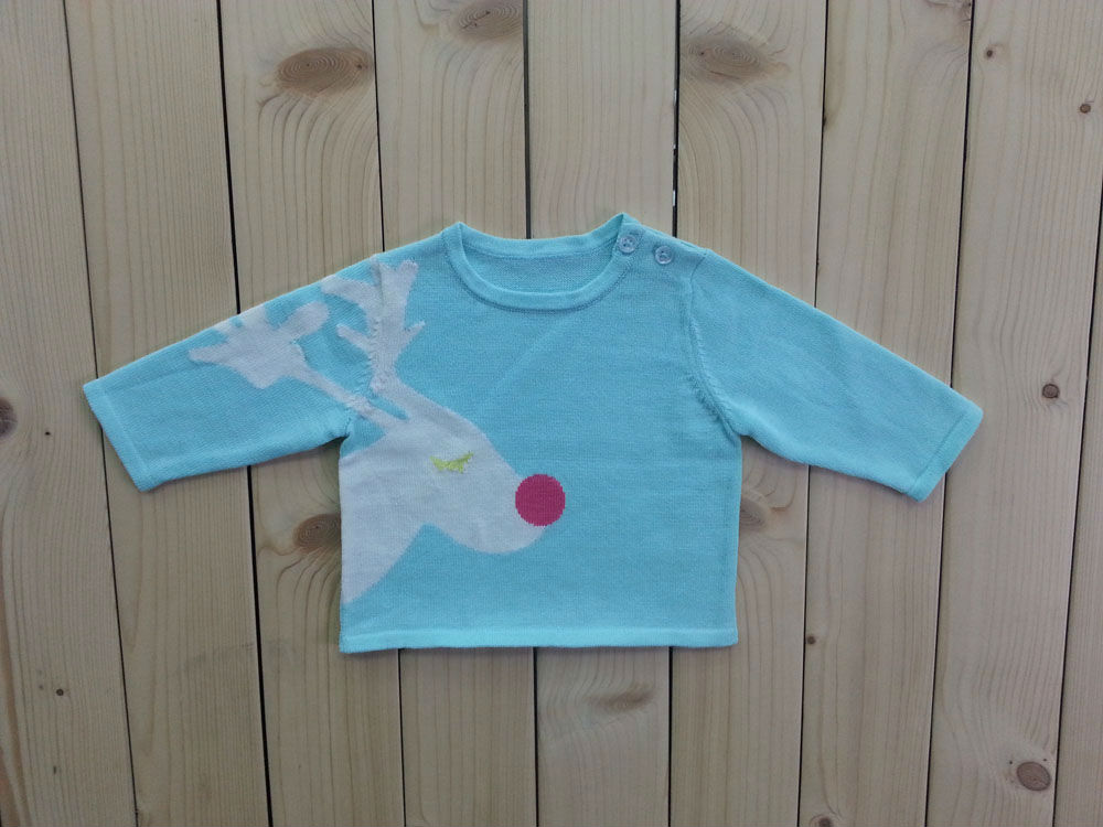 Bring a festive touch to your baby’s outfit with this knitted sweater. Finished in a single tone, this exquisitely crafted piece features a knitted deer on the right panel and seamlessly extends to the arm for an eye-catching embellishment. The high-quality material keeps your baby warm and snug, making this a perfect styling choice for the holiday seasons.