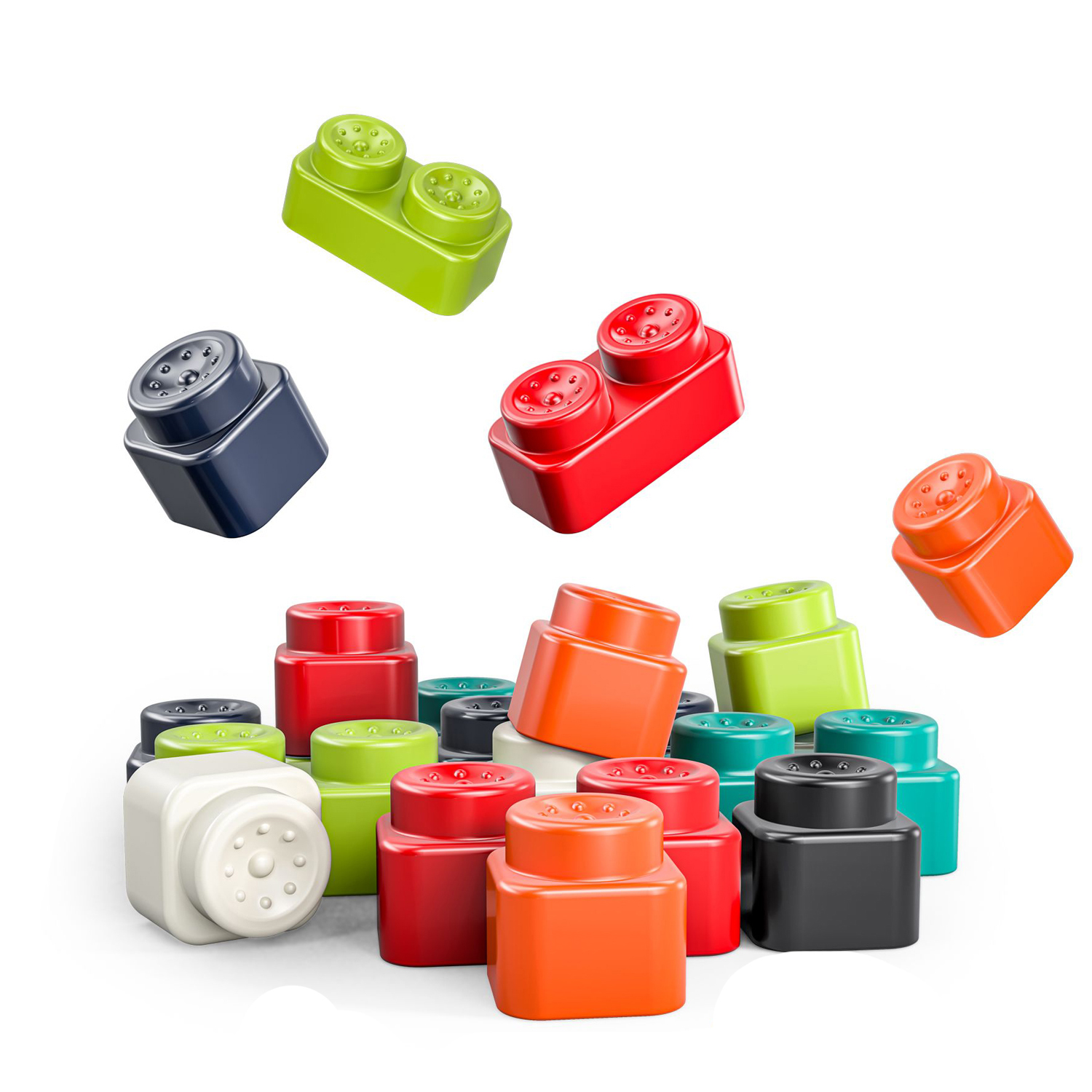 ♥These soft and colorful blocks are specially designed for babies. Soft, round and smooth, without sharp edges that could hurt fingers, safe for child to play. All soft blocks made of environmentally friendly materials, no paint, large groove for easy clean-up. Distinct models block pieces are extra-large and easy to build and create. They fit easily into place securely without sticking too tightly, thus toddlers can assemble and take apart easily. Everything from balance, symmetry, shapes, sizes & colors are learned while building