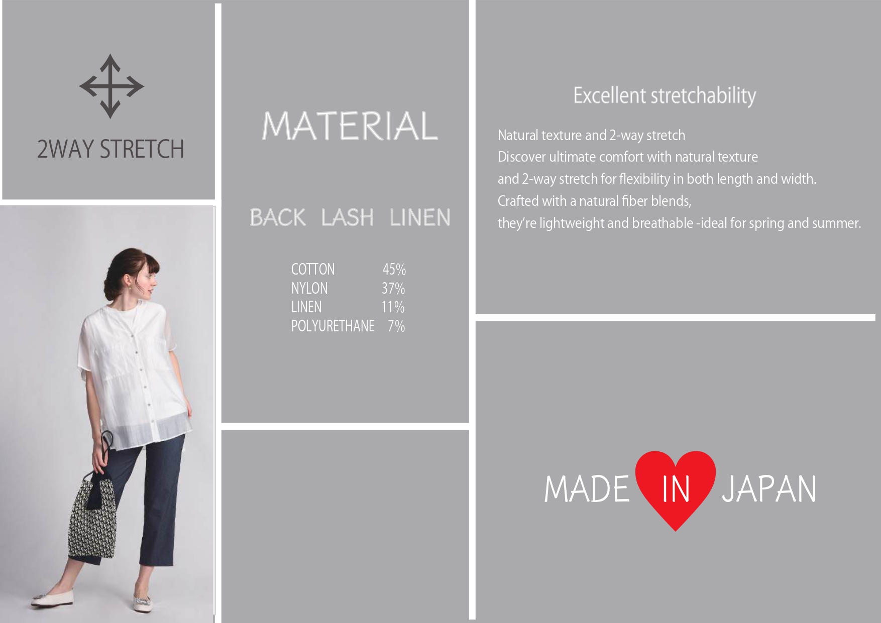 Discover ultimate comfort with natural texture and 2-way stretch for flexibility in both length and width.