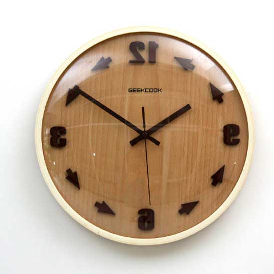 The wooden wall clock features a bentwood frame with wood grain lagging surface. The wall clock is designed with 24 hours clock mechanism. It is surely an innovative addition to decorate your room.