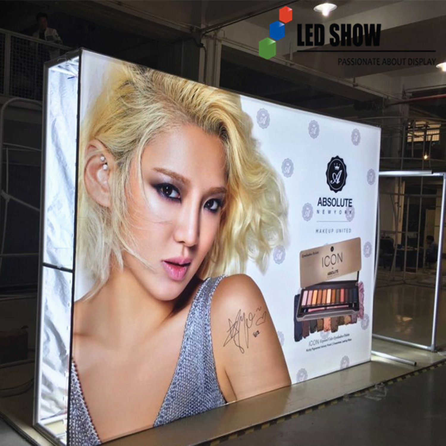The customized hooks are very convenient for fixing the exhibition lighting on the SEG Systems Backlit Popup Displays.