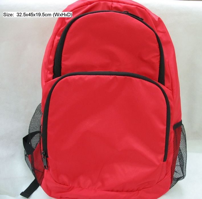 This simple backpack features a major compartment and a minor front compartment to give you ample storage space. It is also equipped with 2 side net bags to offer extra room and easy access to small items. The zipper closure allows you to easily put in and take out your belongings, while nylon makes this bag a hard-wearing one.