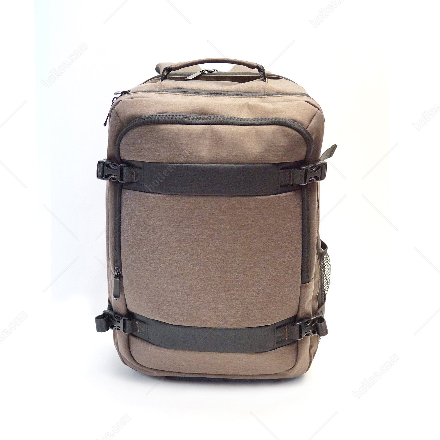 • Zipper and buckle closure.