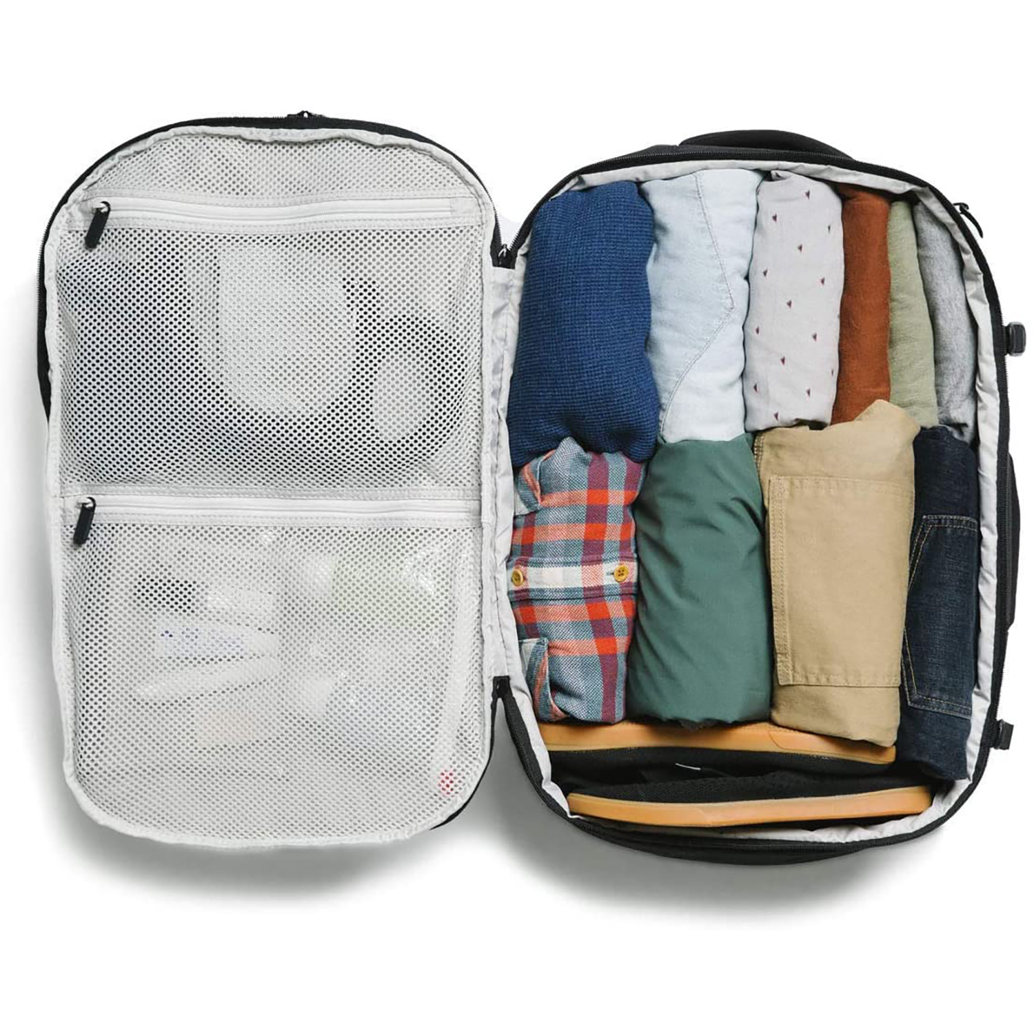 Travel backpack fits a 17" laptop, 9.7" tablet, and all your chargers.
