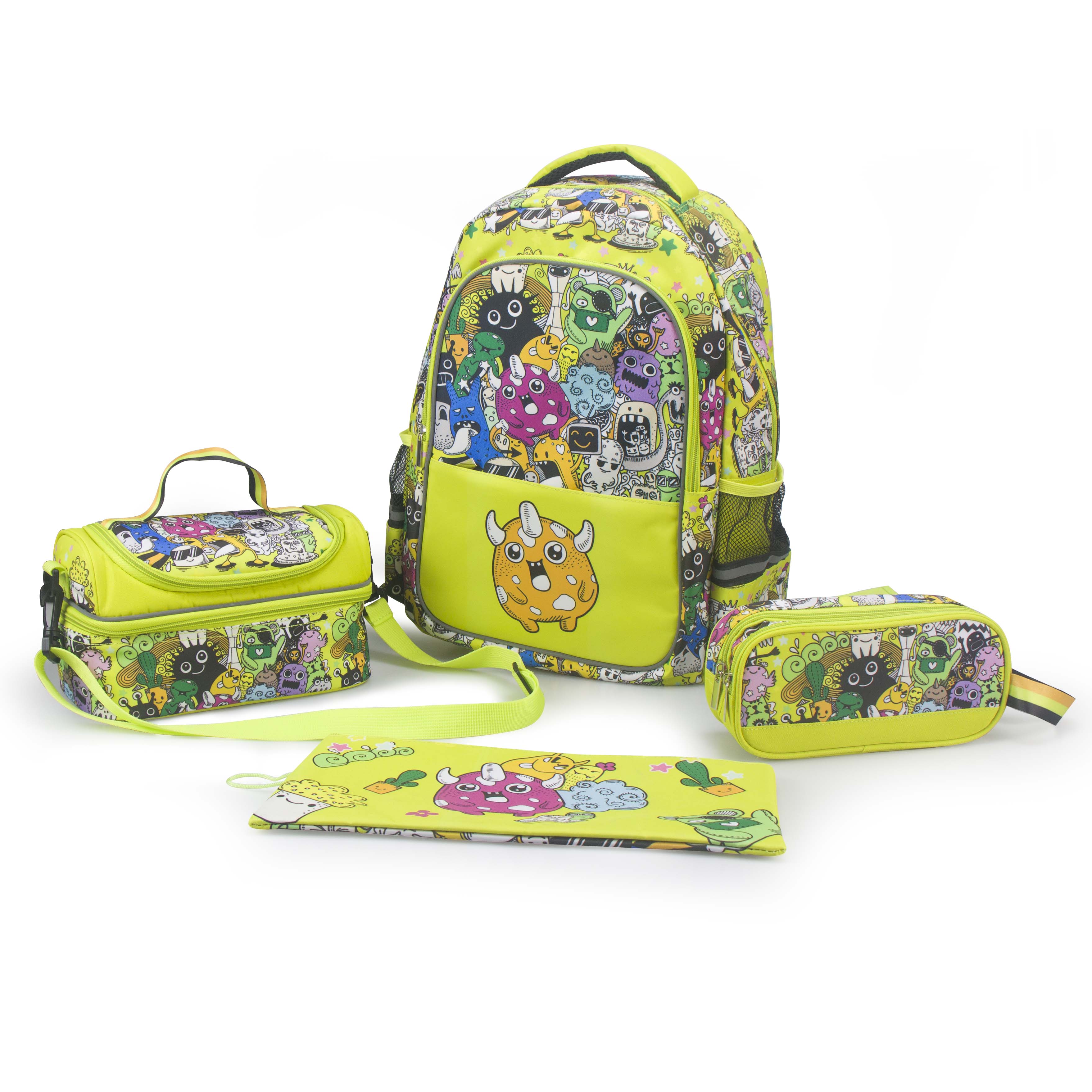 This adorable 4‑piece school set comes with a cute cartoon backpack, a matching insulated lunch bag, and a handy pencil case.
