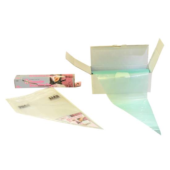As shown are disposable bags which are used to keep cream for decorating cakes. Made of PE, these bags are tough and of high quality. These bags come in a roll which allows ones to cut the size they need.