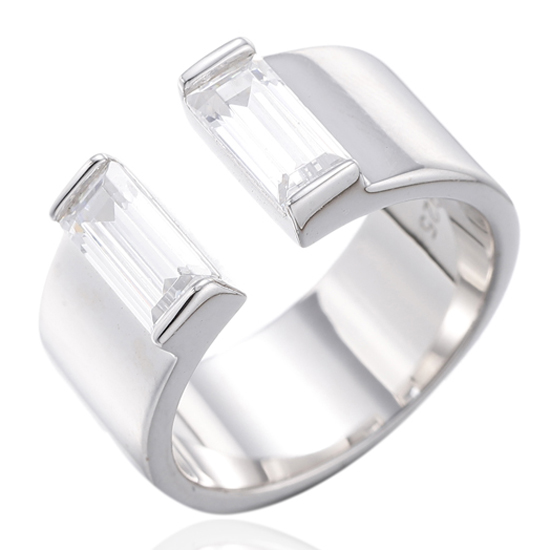 Baguette White Cubic Zircon Rhodium Silver Open Ring