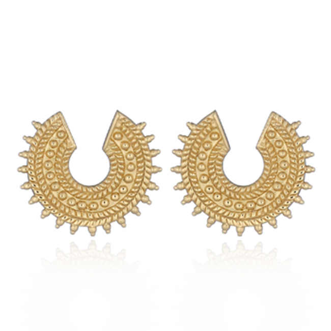 Balinese Yellow Gold Sun Curve Silver Earrings