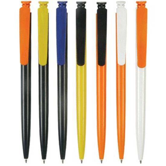 As shown is a set of colourful ball point pens. The pens are of a clicky-top design. Customized logos or words can be further imprinted onto the shaft.