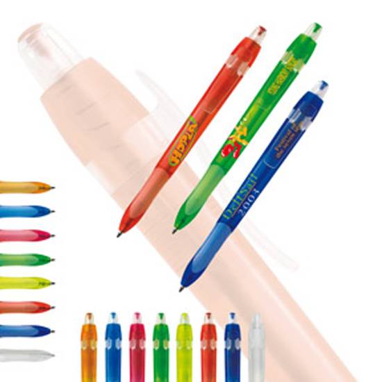 The retractable ball point pen with a fashion outlook. It has amoulded rubber grip. It has a pen hook on top.