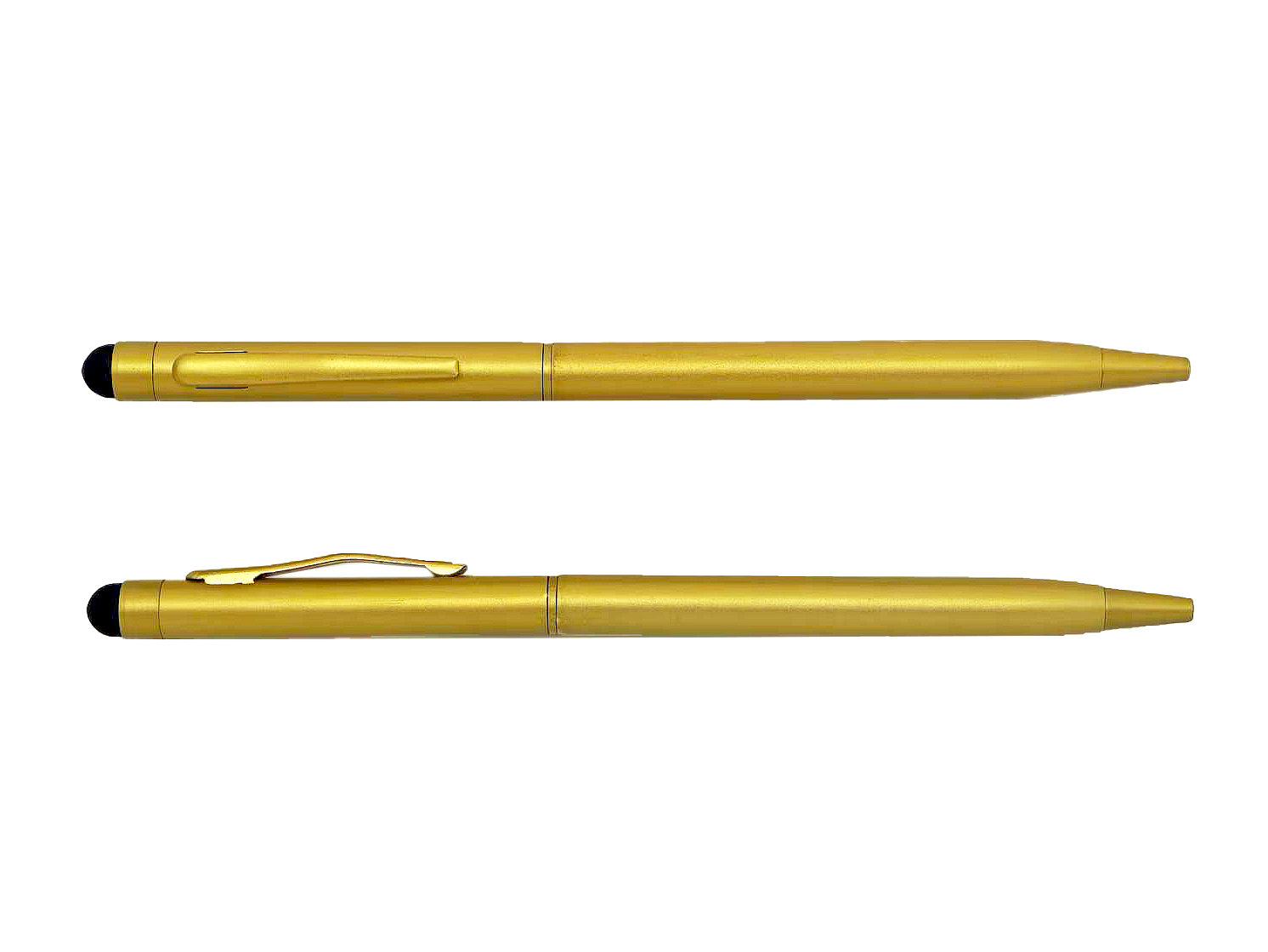 Slim metal pen with full matte golden barrels and matte silver fittings and clip, Twist-action,