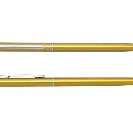 Slim metal pen (stylus)with full matte golden body, Twist-action, and Black iPad touch dot on the top.