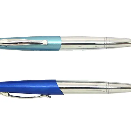 Twist-action metal Ball pen with Customized colored lid and shiny chrome barrel.