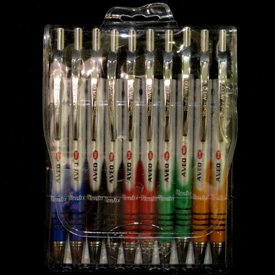 Displayed here is a bag of ball pens with stylish and textured grips that provide exceptional writing comfort. The semi-translucent barrel of this pen allows you to monitor the amount of ink. This smooth and durable ball pen is essential for students.
