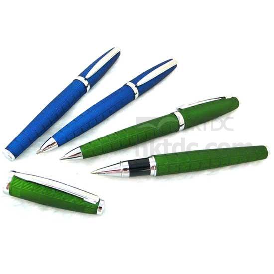 Presented is a beautiful set of ball pens and roller pens. The pens are designed in an open-cap style with streamlined barrels and caps. The pens come in sharp colors, which are highlighted by subtle square patterns for extra style.