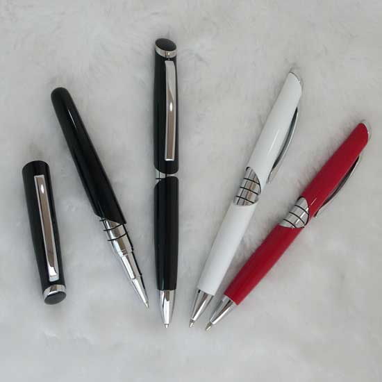 Featured here is a gift pen set with a fashionable design. The striped details contrast beautifully with the glossy main color. This gift pen set includes a metal ball pen and roller pen.