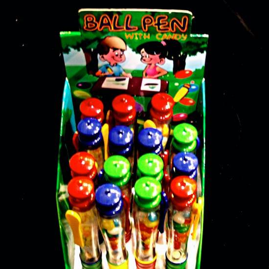 Featured are candy-filled toys which are actually real ball pens. They come in three colors and have an interesting design. Kids can bring the ball pen to school and enjoy the candy during breaks.