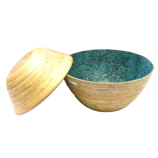 This bamboo bowl is especially designed and made into the giant size. The polished surface is waterproof and greaseproof. This item is an excellent container for salad.
