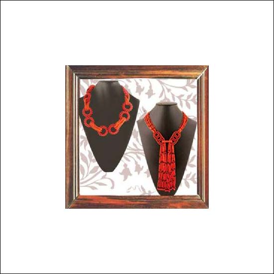 • The photo shows two pieces of hand-knit bamboo coral beads jewelry
