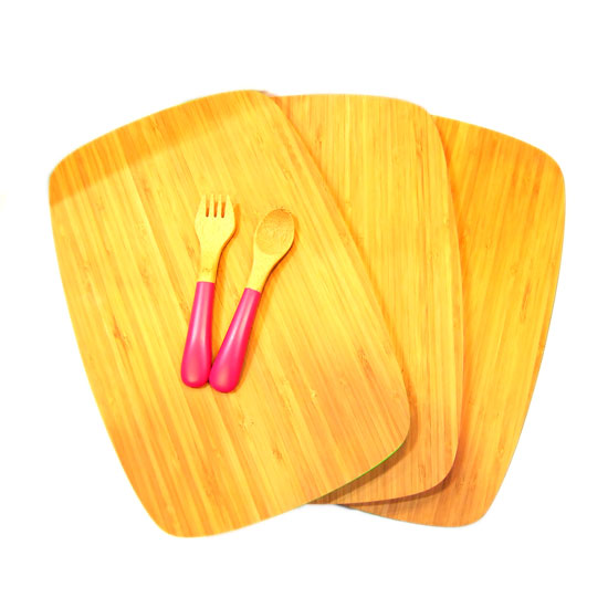 This bamboo cutting board features a large, rectangular-shaped cutting surface with round edges. The cutting board is handmade of bamboo and applied with top-grade, safe and natural drying oil. The bamboo cutting board comes with a set of matching fork and spoon.