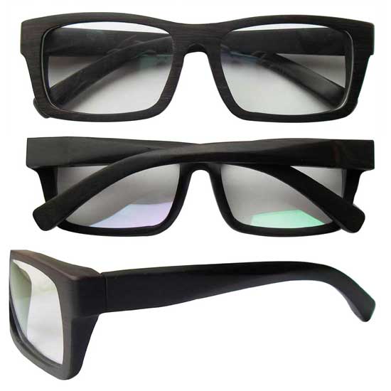 This pair of eyeglasses is made of bamboo with a full rim design. The frame features a rectangular shape in a matte-black finish. The thick temple adds on the style of this pair of glasses. This pair of lightweight bamboo glasses prevents pressure marks on the wearer's nose.