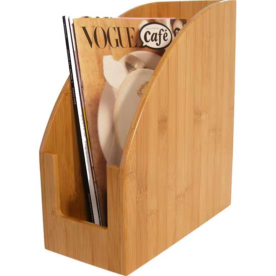 This bamboo magazine rack flaunts a simple and modern style. The spacious rack features an asymmetrical body for convenient picking of magazines. The bamboo grain offers a natural touch.