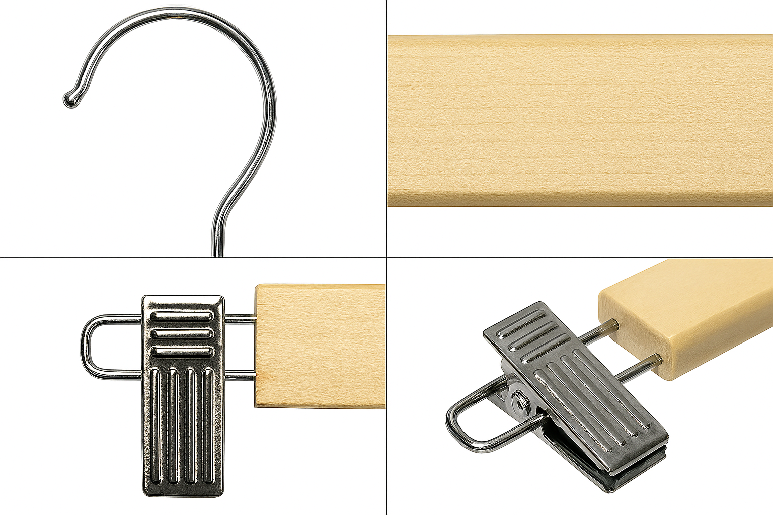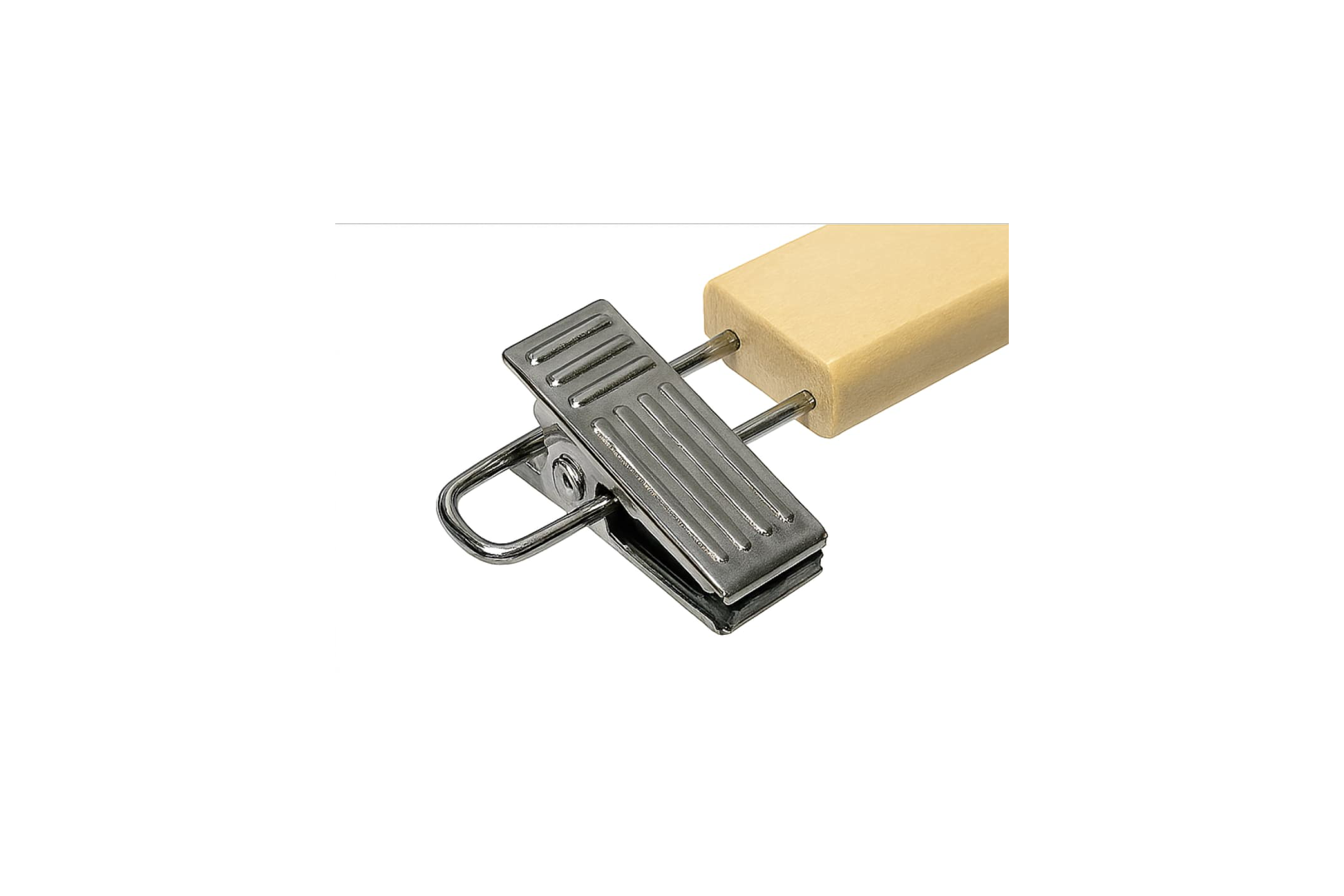 Elevate your wardrobe organization with this eco-friendly bamboo hanger, designed for both style and functionality. Crafted from sustainable bamboo, it features two durable metal clips that securely hold a variety of garments—including skirts, pants, stockings, and more. The natural bamboo finish adds a touch of elegance while supporting environmentally conscious living.