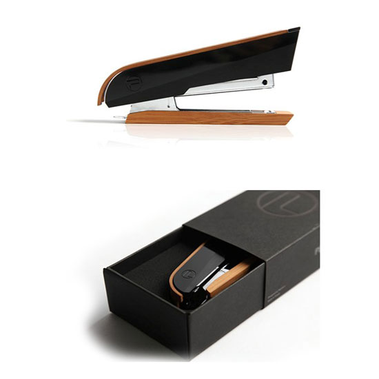 This stapler features a mechanically activated red LED light. Press the stapler lightly and the light will show exactly where the staple goes. The body of the stapler is made of carbonization bamboo for a unique texture and grain.