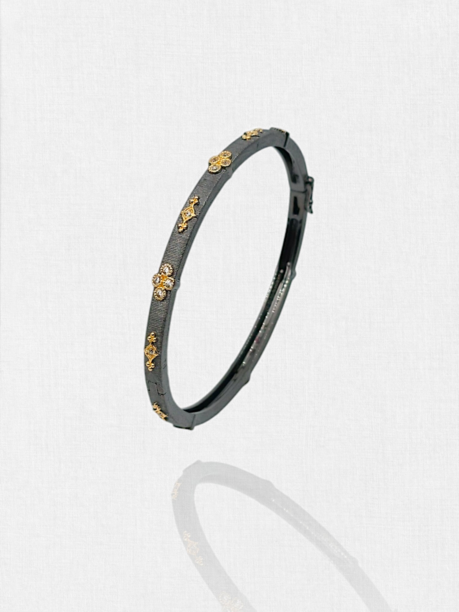 Sterling Silver bangle, Black Rhodium & 14K Yellow Gold plated with White CZ