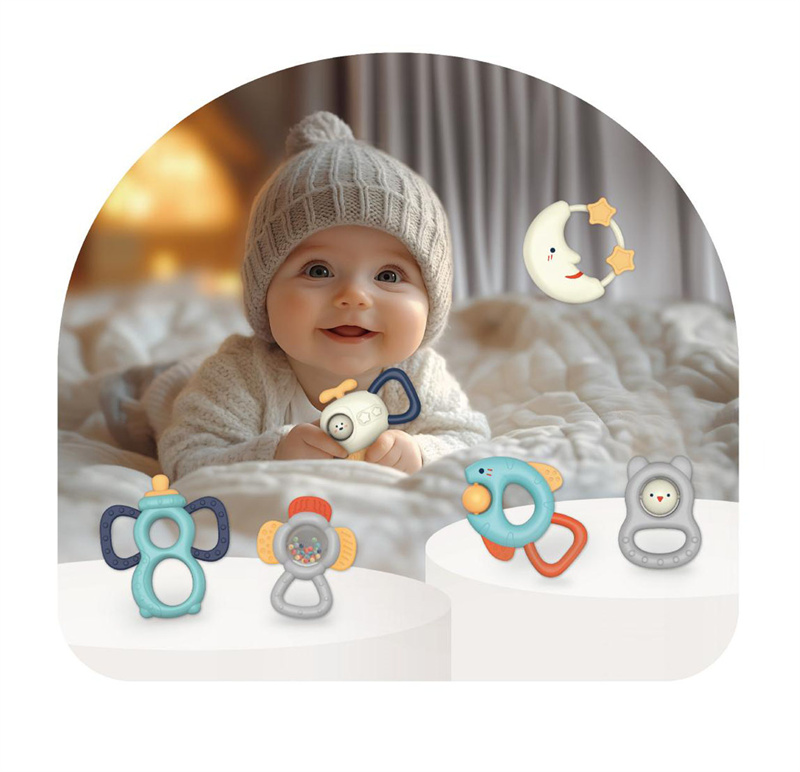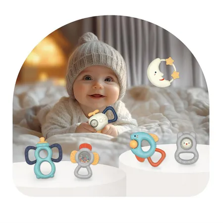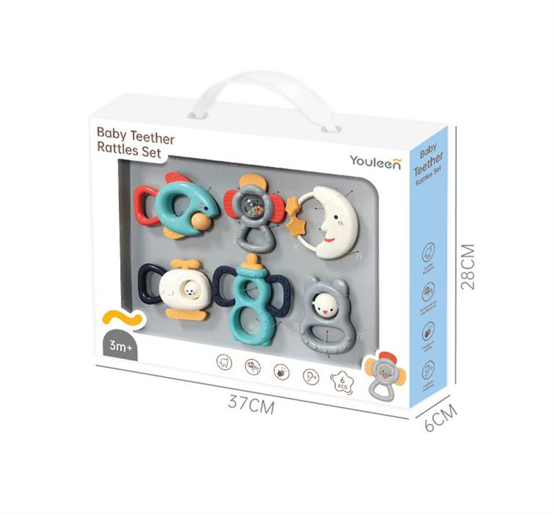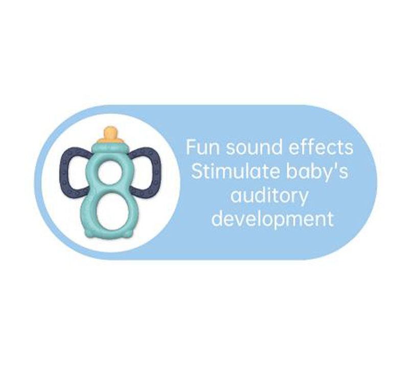 Two-in-one teether rattle, also known as molar stick, molar, tooth fixer and tooth trainer, is made of safe and non-toxic materials, with unique and diversified appearance. By sucking and gnawing the soft colloidal surface of teether, it can massage gums