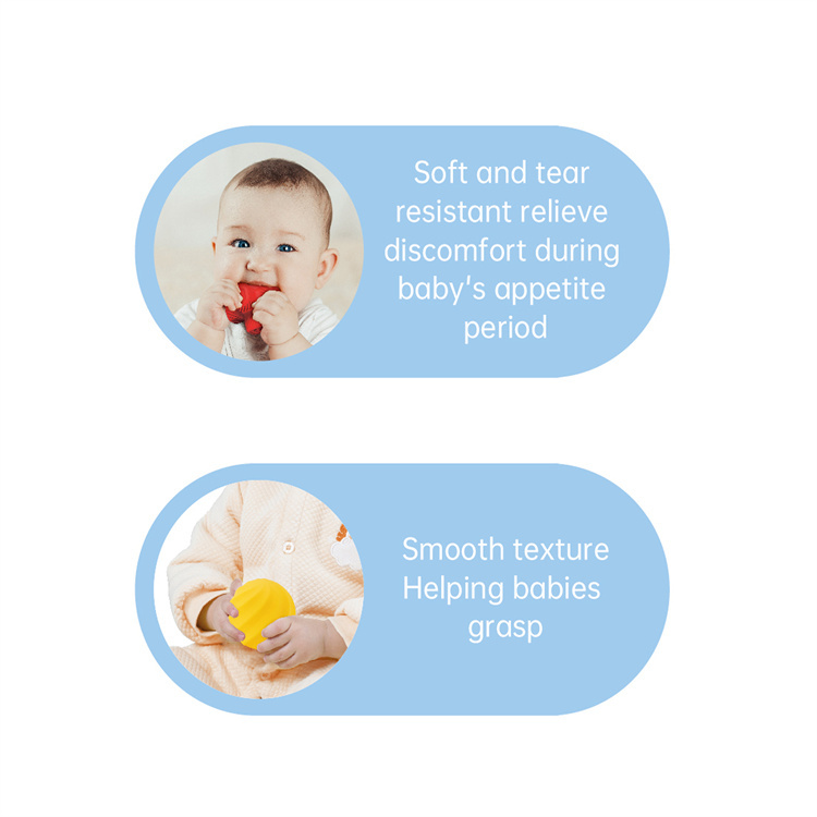 1: Can be boiled at high temperature 2: Rich color perception 3: Cultivate your baby's gripping ability 4: Stimulate your baby's hearing Enrich your baby's sensory experience and accompany your baby to grow up healthily!