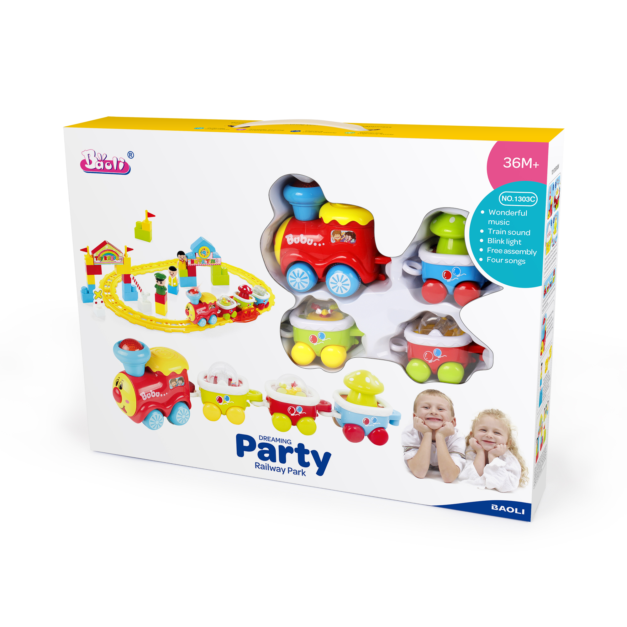 Electric Train: The train runs on its own, with lights and sounds that keep kids engaged.