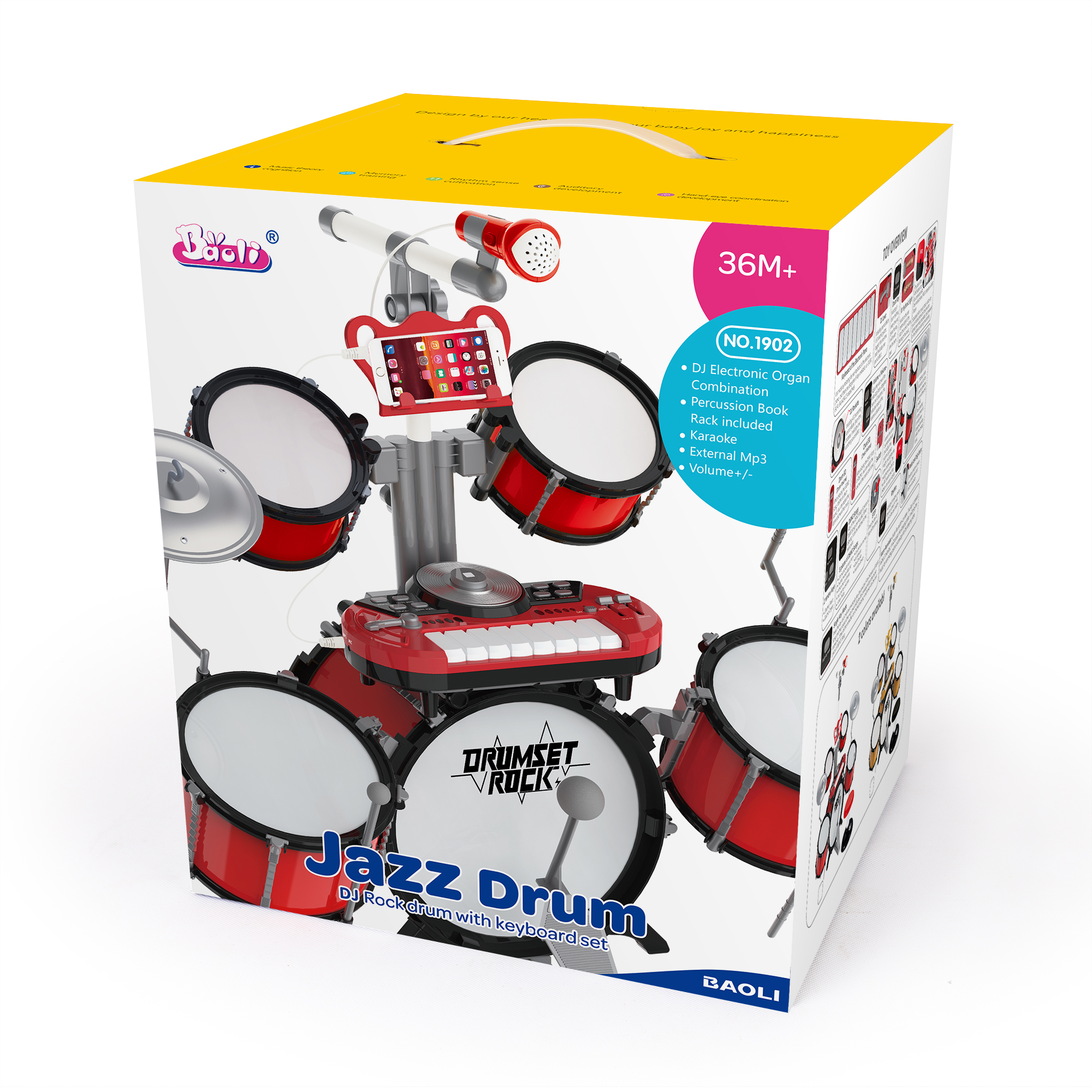 This exciting and versatile drum toy combines the classic feel of a jazz drum set with a built-in DJ keyboard, creating a unique experience for young music enthusiasts. Perfect for sparking creativity, rhythm, and coordination, this drum set offers an array of features to make every play session fun and interactive.