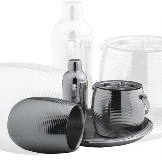 Presented here is a bar set with a simple yet stylish design. This bar set comes with a double-wall belly ice bucket with a lid, a double-wall belly wine cooler, a premium cocktail shaker and a bar tray. This bar set is ideal for home use.