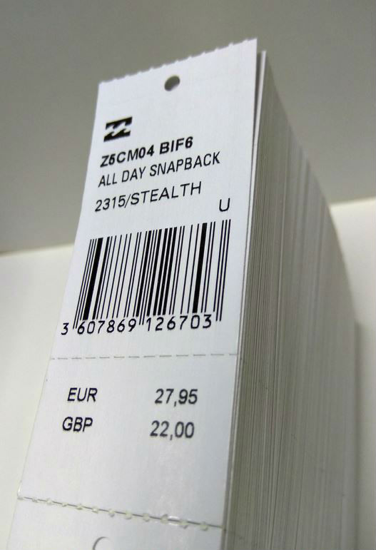 This barcode hangtag carries your brand identity, product details, price and other information needed for communicating with the customers and supply chain, which provides effective stock tracking for retail applications. Cut in a rectangular shape with a hanging hole and dotted lines, this hangtag can be attached to the products and partly detached with ease.