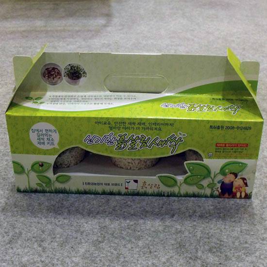 Featured is a DIY plant seed set packed in a rectangular box with handles for easy carrying. The dried stones and an organic fertilizer offer easy planting. This planting package is ideal for teaching your children a planting and gardening lesson.