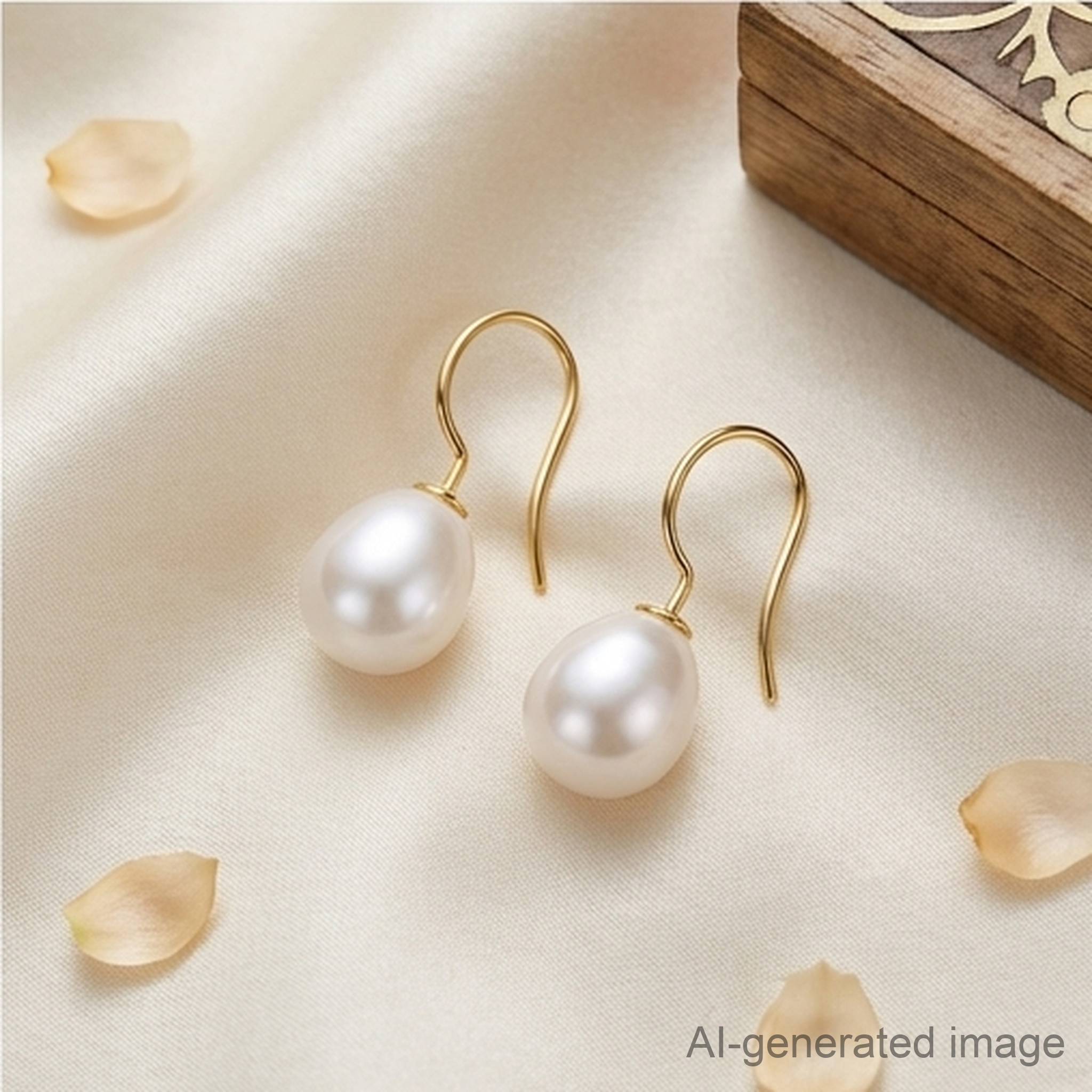 Sterling Silver Earrings with 9-9.5 mm Irregular Freshwater Pearl