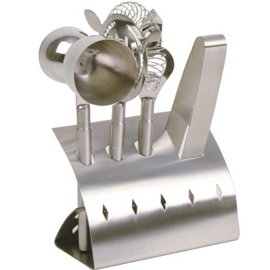 The metal barware set includes a cocktail shaker, a jigger, an ice scoop, etc. The included stand provides a secure place for neat storage of all barware items. The stainless steel material promises easy cleaning while providing resistance to corrosion for longer use. This complete barware set is an exceptional piece for preparing delicious drinks right at your home.