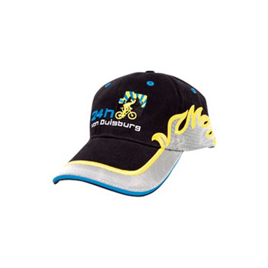 This cotton baseball cap features 3D embroidery for a vivid touch. The metallic detailing on the peak and crown shows the dynamic of a famous mountain-bike event. This baseball cap best matches sportswear and leisure clothing.