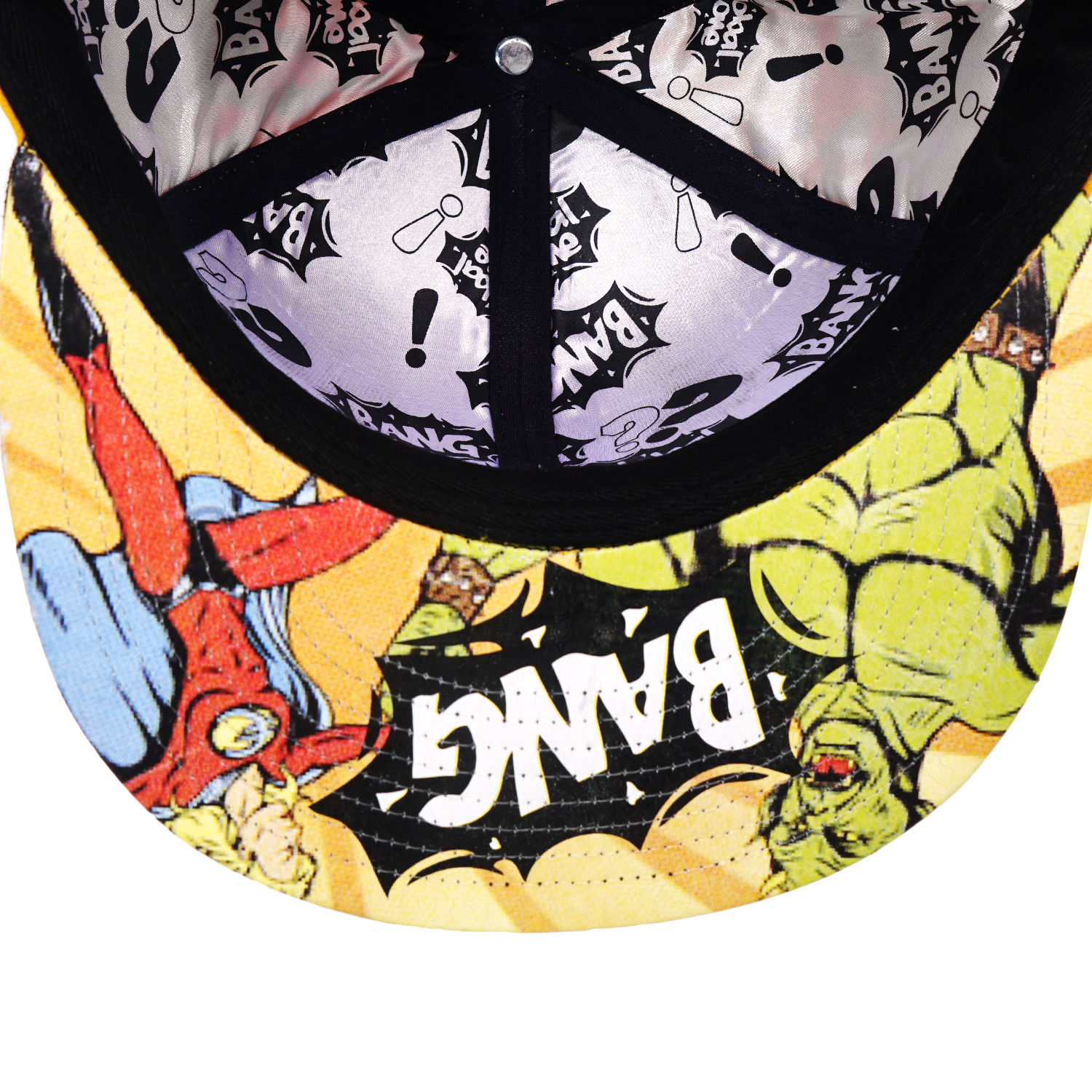 This comic-style basketball cap makes an impression with its subtle but exquisite cartoon print underlay not only in the front but also under the brim. The six-panel basketball cap comes in tone-on-tone embroideries all over the back to flaunt its meticulous craftsmanship.