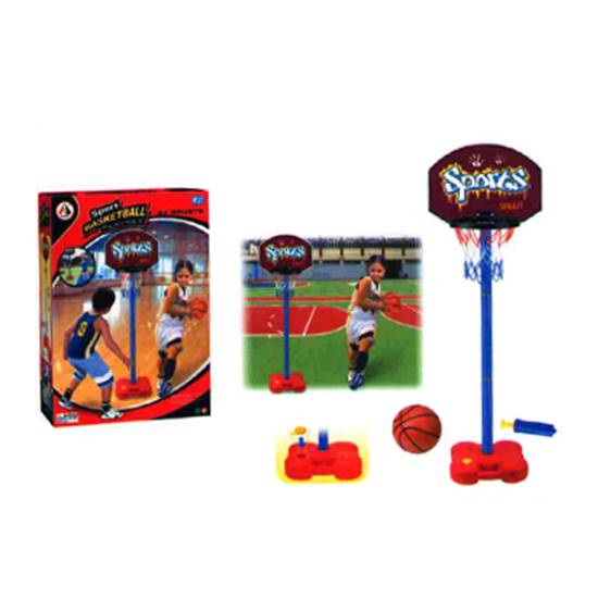 This is a mini basketball play set for sports lovers. The set contains a 16" basketball, a 6" inflater and a basketball stand. The stand size is adjustable from 112cm to 150cm.