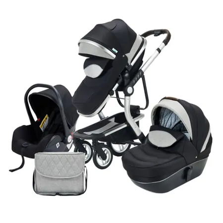 This multifunctional and practical baby stroller is designed as a bassinet that can carry the baby anywhere. It is equipped with a foot cover that can keep the baby warm and it can be removed in hot weather either. The adjustable canopy can well protect the baby from UV radiation and provide a good rest environment for the baby. Featuring the aluminum frame construction, the stroller is durable and quickly folds up.