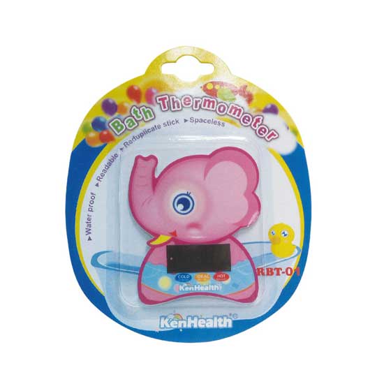 This eye-catching bath thermometer features the design of a cartoon pink elephant. It offers a fast and reliable way to check for the correct temperature of baby's bath water. The handy bath thermometer is restickable and will not leave residue on the wall after being removed.